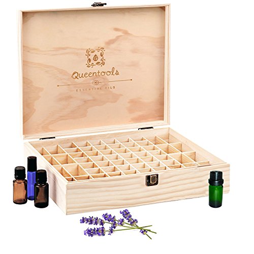 -. Feature : Made from natural wooden material, extra safety with the quality clasp made of stainless steel. / Prevents your oils from damaging sunlight and other things while traveling and get all your oil roller bottles together. / Divided grids design of Queentools essential oil holder with different sizes, can hold 68 different oil bottles in sizes of 10ML and 15ML with the dimension of 13.39" (length) x 10.83" (width) x 3.15" (height). / Easy to take it with you due to the size of the oil box, also easy to store the box in a closet or take the holder with you in a car or public transports. / An elegant item for a luxurious gift and roller bottles packaging, perfect for essential oils displaying when making presentations.