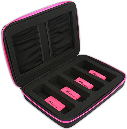 eD ELITE HOT NEON PINK QUAD STORAGE CASE for your active 3-D Glasses with 4 Microfiber Cleaning Cloths for 3D glasses with foldable arms by eDimensional Elite Series (PINK)
