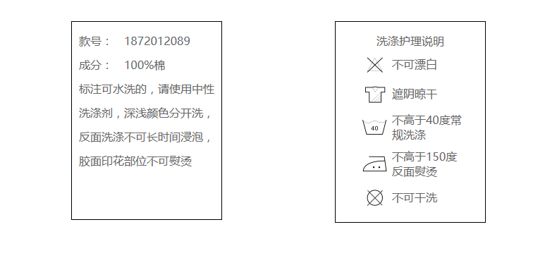 * 请不要使用漂白剂及长时间浸泡,清洗后,调整衣型进行晾晒,避免阳光直晒,以免出现变色情况.