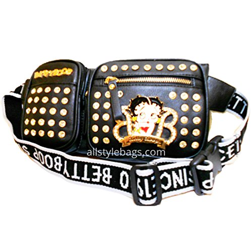 -. Brand : Betty Boop -. Color : black -. Department : womens -. Feature : material: faux leather with rhinestones / size: 11.5x7x2.2; strap: 26'~44" / Golden hardware; (Bb16V44848BK) / zipper closure , plastic click in buckle / large zipper closed pockets, extra wide bag -. Model : B16V44848 -. PackageQuantity : 1 -. ProductGroup : Apparel -. ProductTypeName : LAGE -. Size : L -. Title : Betty Boop Bling Black Bb Rhinestone Bicycle Sport L Pocket Waist Work Fanny Pack