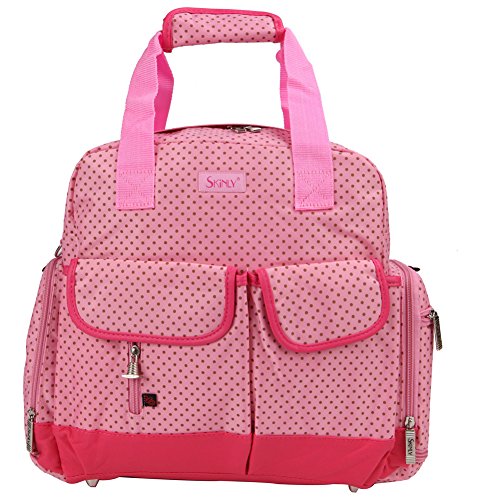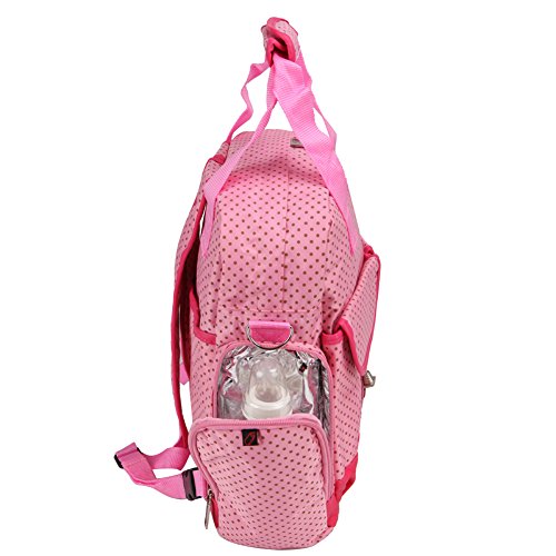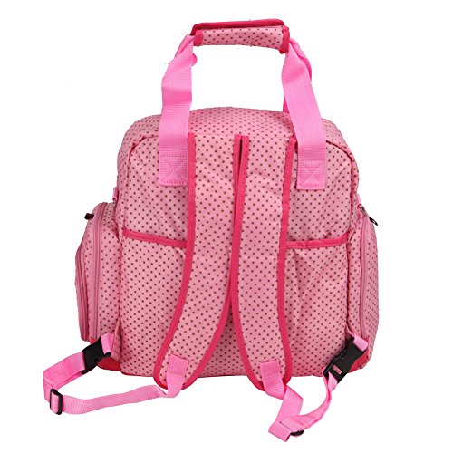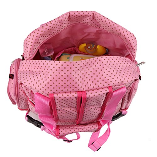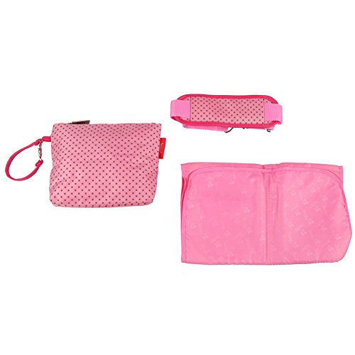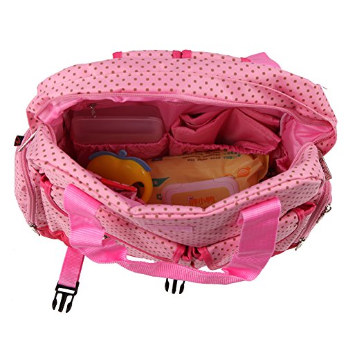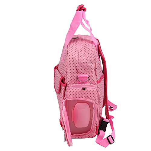 5 piece diaper bag set includes: rommy mommy bag, small zipper pouch, diaper changing mat, easy open wet wipes box, detachable shoulder strap