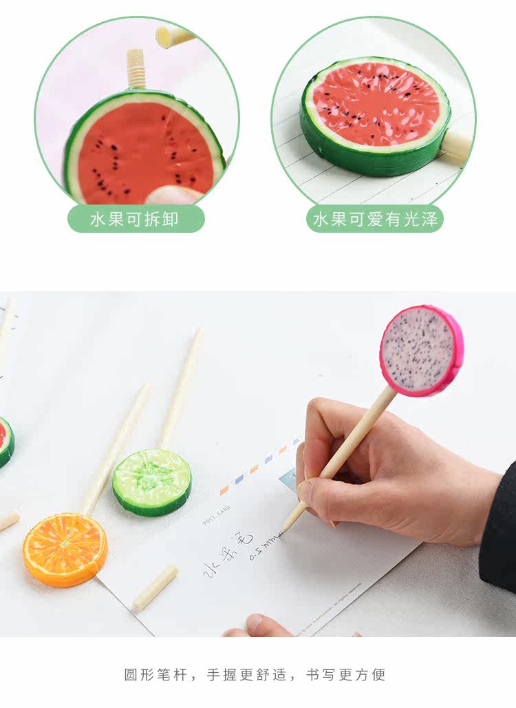 创意水果棒棒糖圆珠笔可爱写字笔0.5mm黑色学生学习书写文具用品