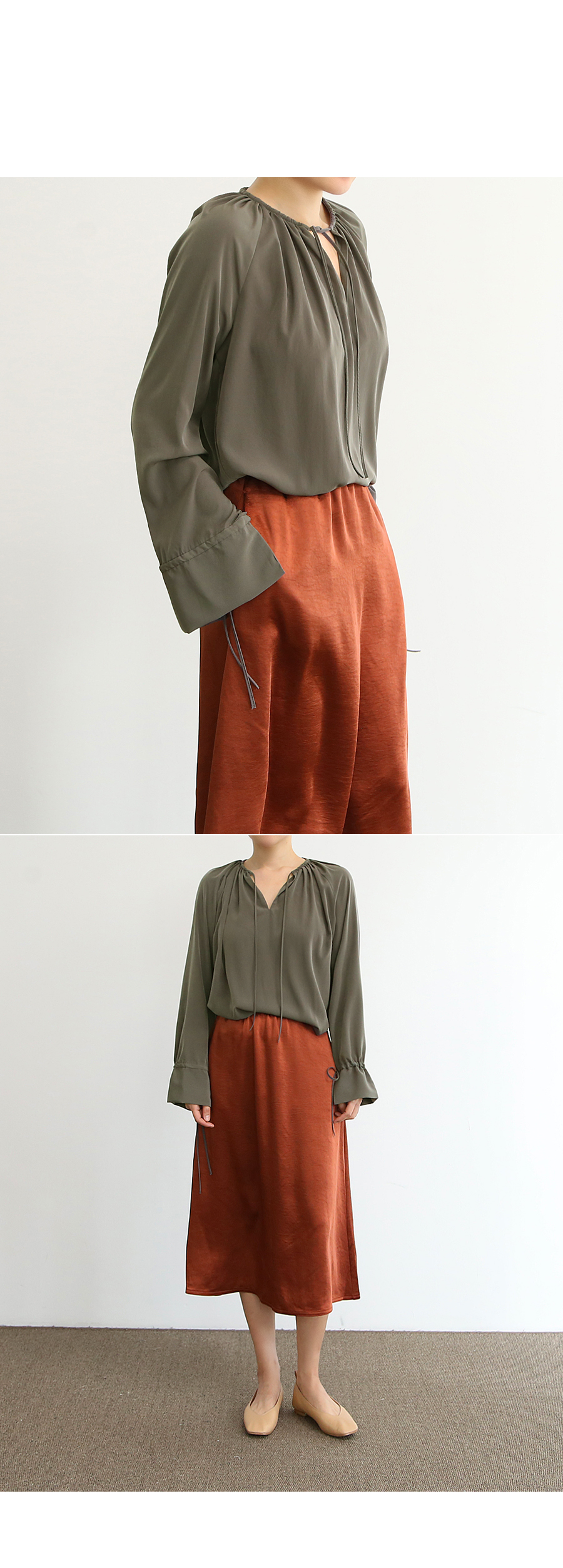 스트링 포인트의 루즈한 블라우스입니다