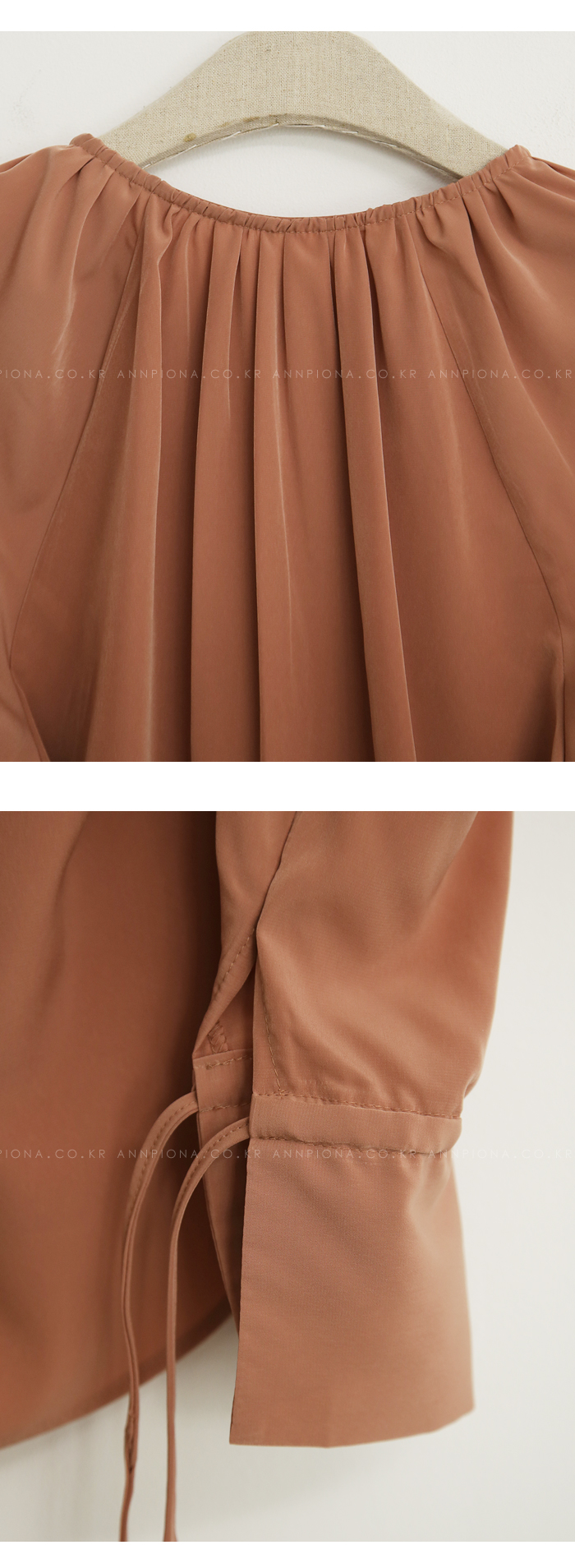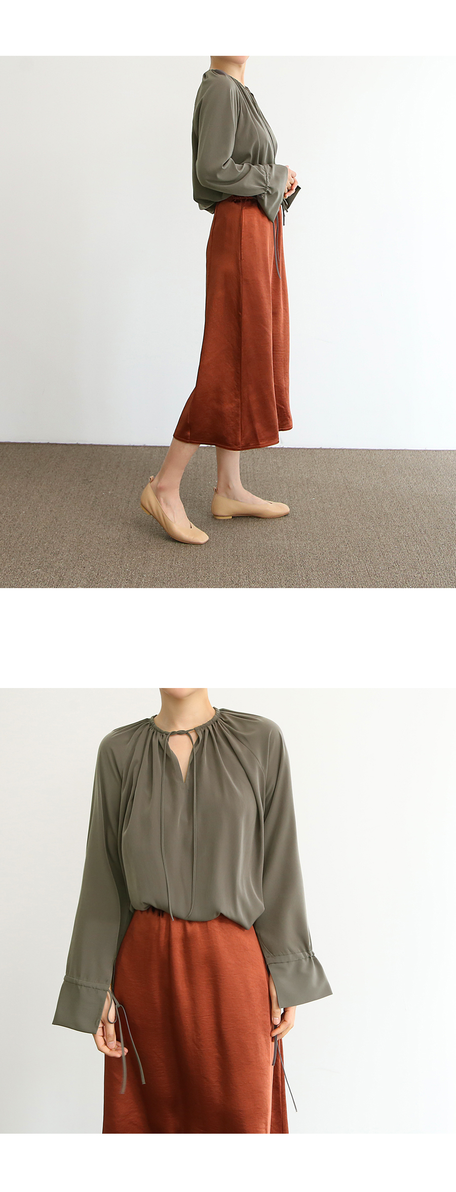 와이드한 소매라인에도 스트링 장식으로 디테일을 살려주었습니다