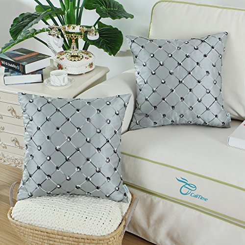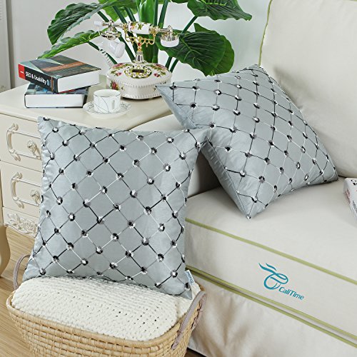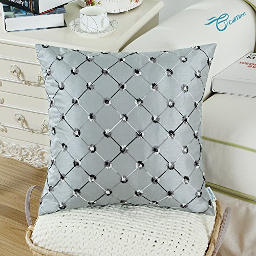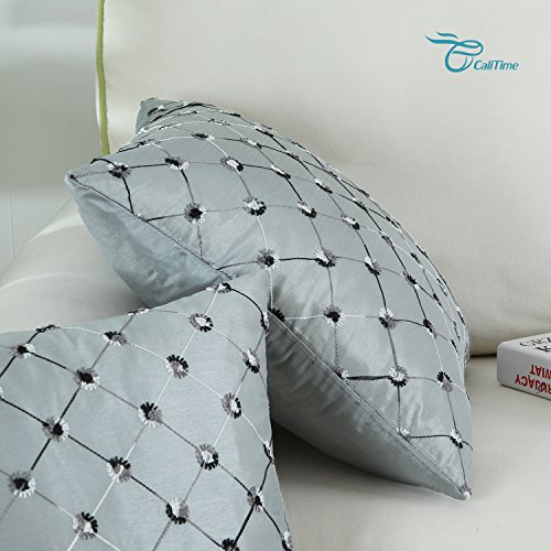 Pack of 2 CaliTime Throw Pillow Covers 18 X 18 Inches, Modern Diamonds Shape Geometric Chain Embroidered, Gray
