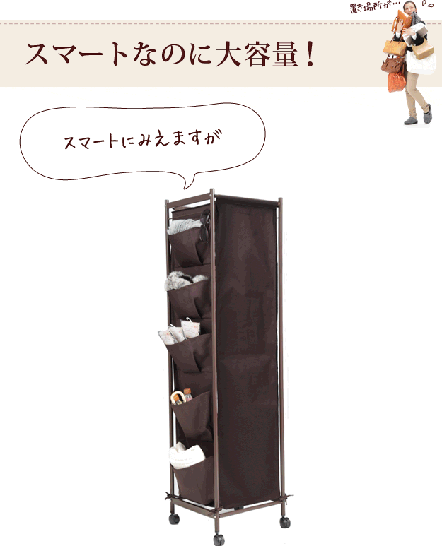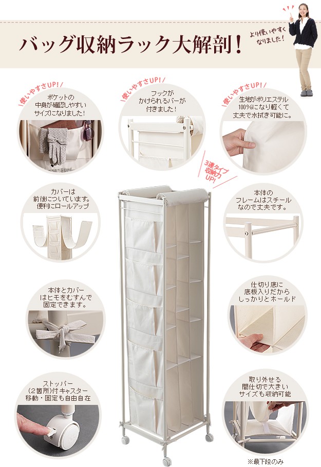 最下段収納部の仕切りは取り外せるので幅のある大きめバッグも収納OK!