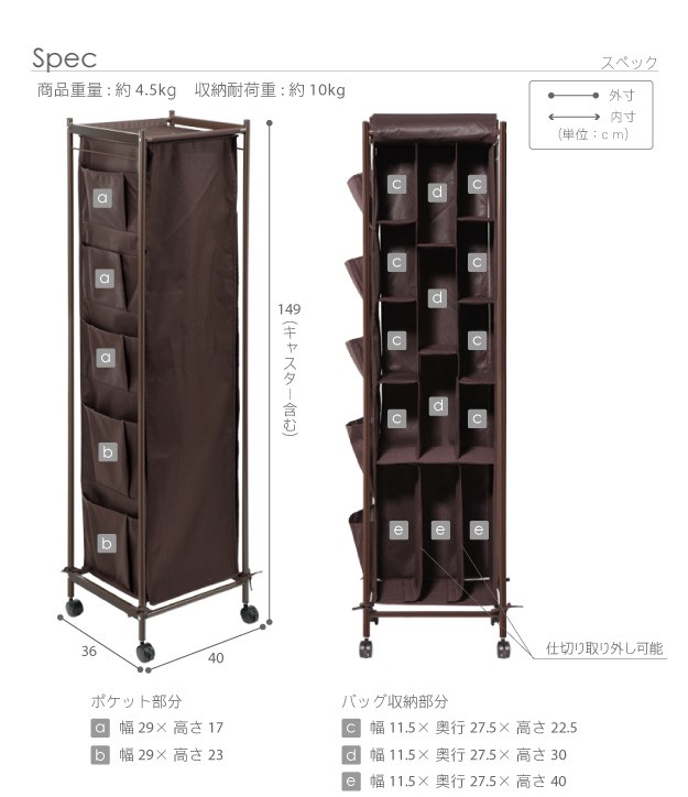 サイズ(cm):幅40x奥行36x高さ149(キャスター含む)・約4.5kg