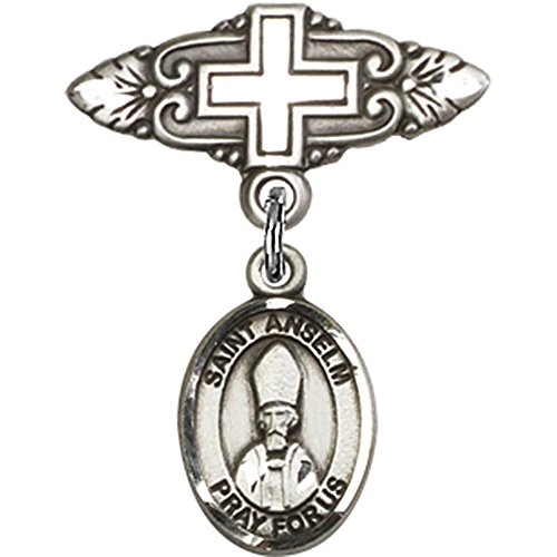 -. Title : Sterling Silver Baby Badge with St. Anselm of Canterbury Charm and Badge Pin with Cross 1 X 3/4 inches