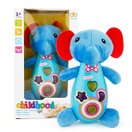 -. Binding : Toy -. Brand : JIALIDA -. EAN : 6932782161218 -. Feature : Made of soft plush and finest ABS plastic material, feel comfort and reassurance. / Funny cartoon animal design will attract babies' attention greatly which make him feel happy and easy to fall asleep / It can play beautiful music and animal sounds that would be helpful for child's early education / Good to boost the relationship between parents and children, join together in the fun / Suitable for child over 3 months old. -. IsAdultProduct : 0 -. Label : JIALIDA -. Manufacturer : JIALIDA -. ProductGroup : Toy -. ProductTypeName : TOYS_AND_GAMES -. Publisher : JIALIDA -. Studio : JIALIDA -. Title : JIALIDA Animal Park Series Cartoon Elephants Baby Child Soothing Plush Toys Kids Fun Toys Birthday Gifts with Light and Music