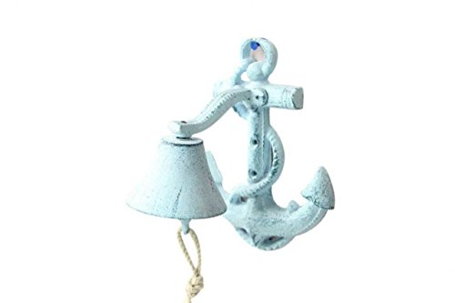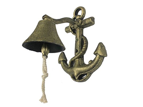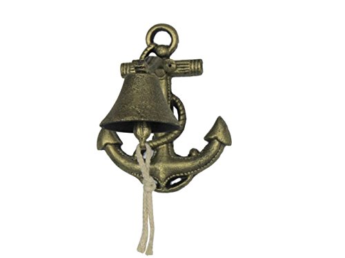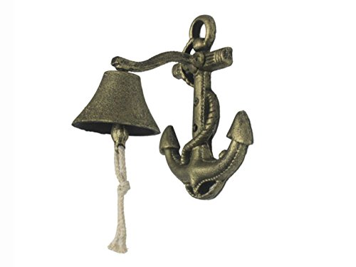 Handcrafted Nautical Decor Rustic Gold Wall Mounted Anchor Hanging Bell 8" - Vintage Cast Iron Decoration - Metal Wall Decor