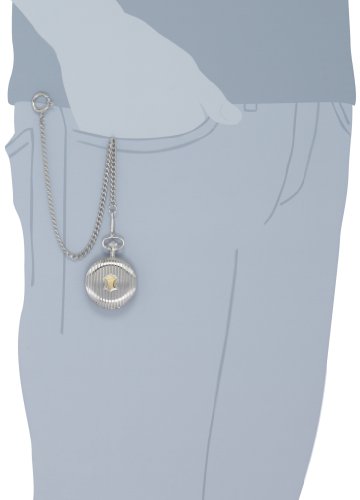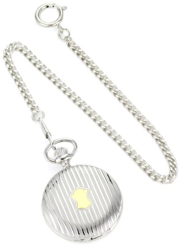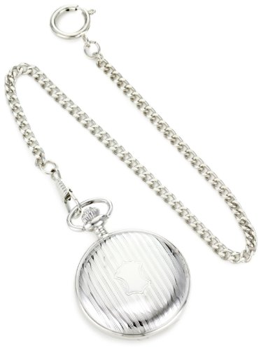 -. Feature : Japanese Quartz movement / Black large easy to read number with white dial 47mm case / Pocket watch gold-silver-tone fancy design hunting case engravable / Includes curb style 14" pocket watch chain with sP.R.Ing ring / Pocket watch comes in gift box with 1 year warranty