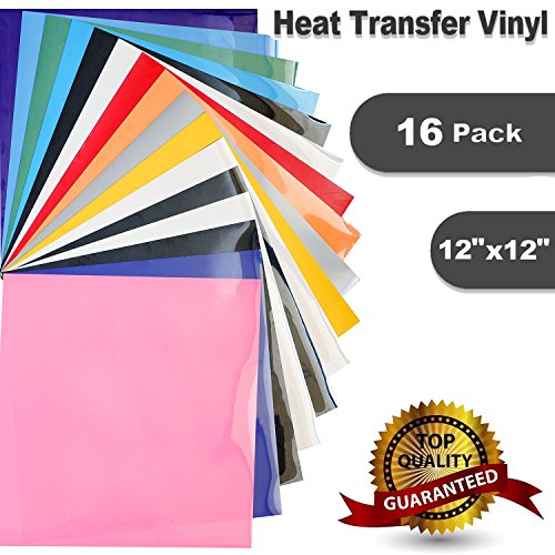 Heat Transfer Vinyl for T-Shirts 16 Sheets 12"x 12" - HTV Iron On Vinyl for Silhouette Cameo & Cricut