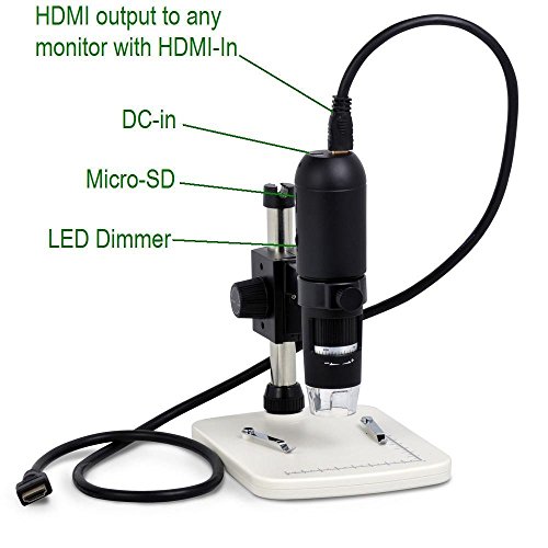 - 080P Full HD Digital Microscope, HDMI Microscope, 10x-220x magnification, to Any Monitor/TV with HDMI-In, Photo Capture, Micro-SD Storage, PC supported