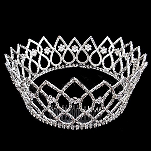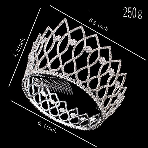 Santfe 3.5" Height Crystal Rhinestone Headband Princess Queen Big Hair Crown for Pageant Wedding Prom