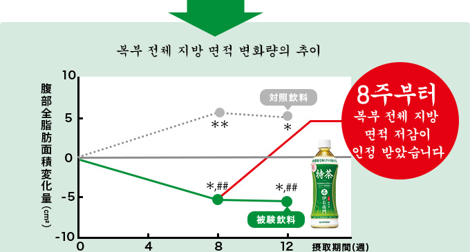 特茶을 1 일 1 개 매일 마시면 일반 녹차 (케르세틴 글리코 몸을 포함하지 않는 녹차)과 효과를 비교 한 결과, 체지방의 감소가 인정했습니다.