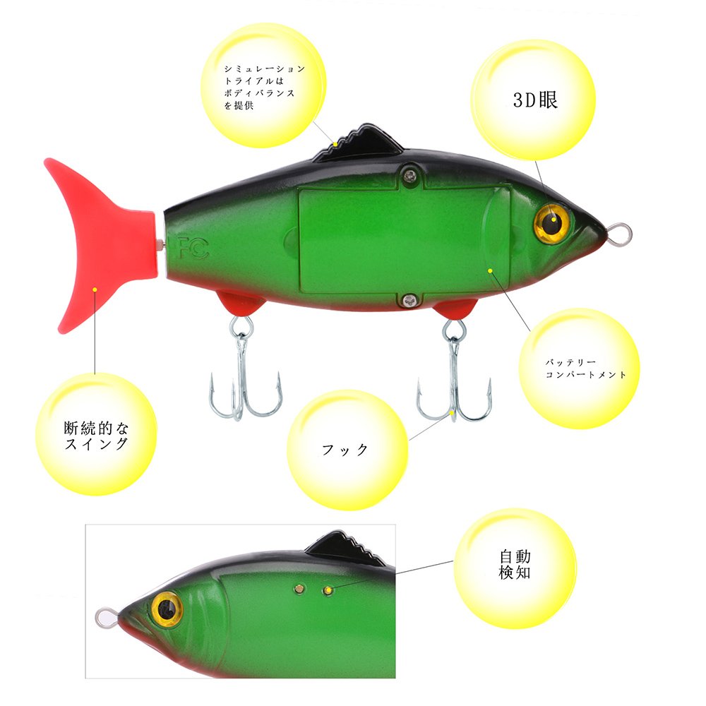 Installed with 2 * AAA battery, it will be an electron moving lure, just throw it into the water and the lure will be active with automatic water.
