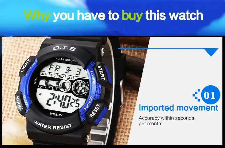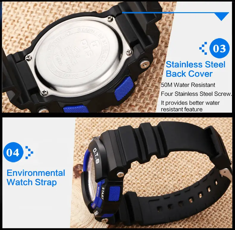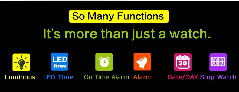 Feature:Back Light,Alarm,Water Resistant,Chronograph,Week Display,Shock Resistant,Repeater,Stop Watch,Complete Calendar,Auto Date,LED display