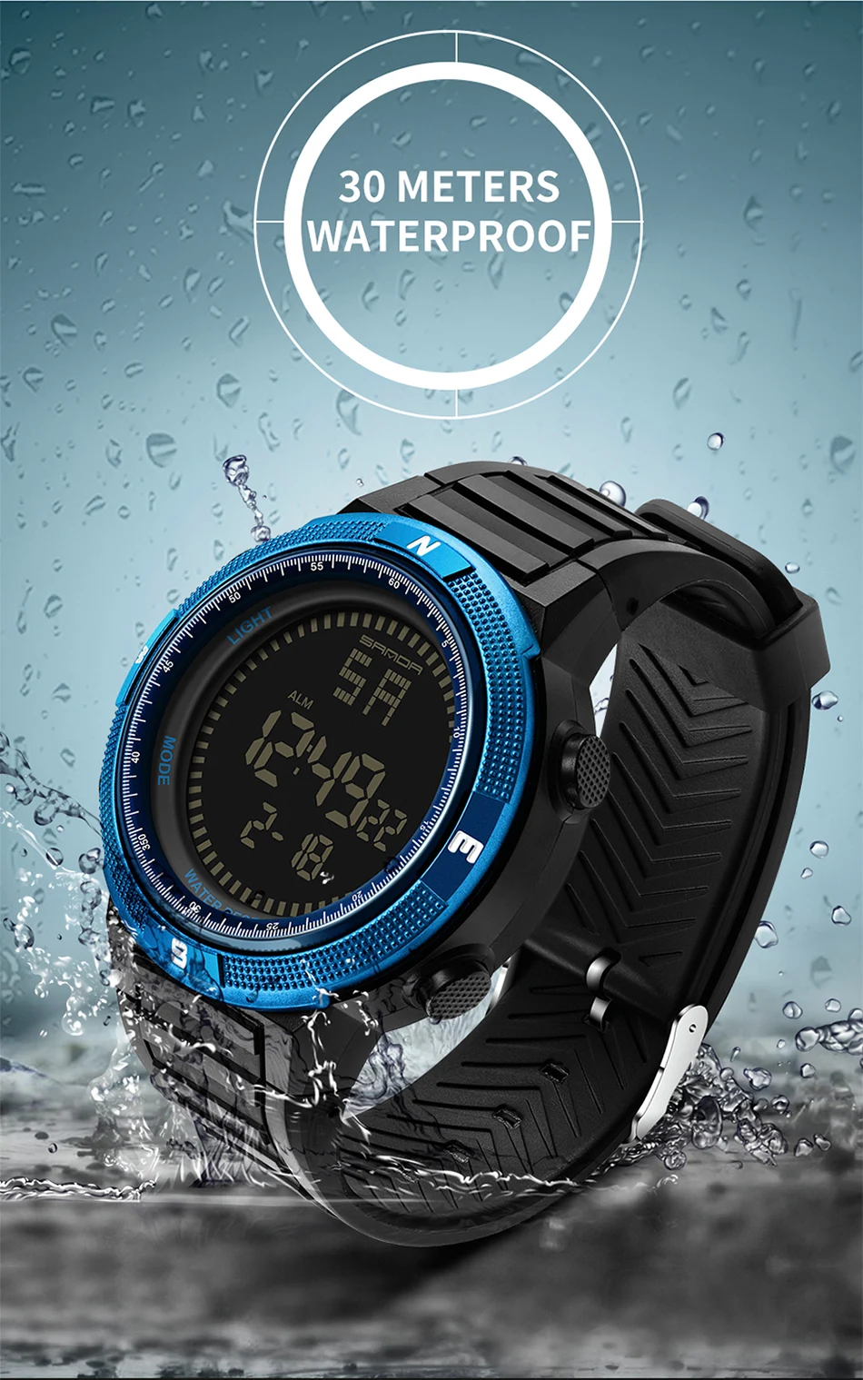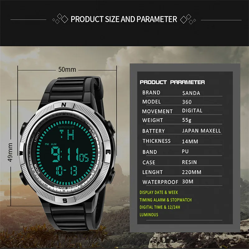 Feature:Complete Calendar,Shock Resistant,LED display,Auto Date,Week Display,Water Resistant,Back Light,Chronograph,Multiple Time Zone,Swim,Luminous