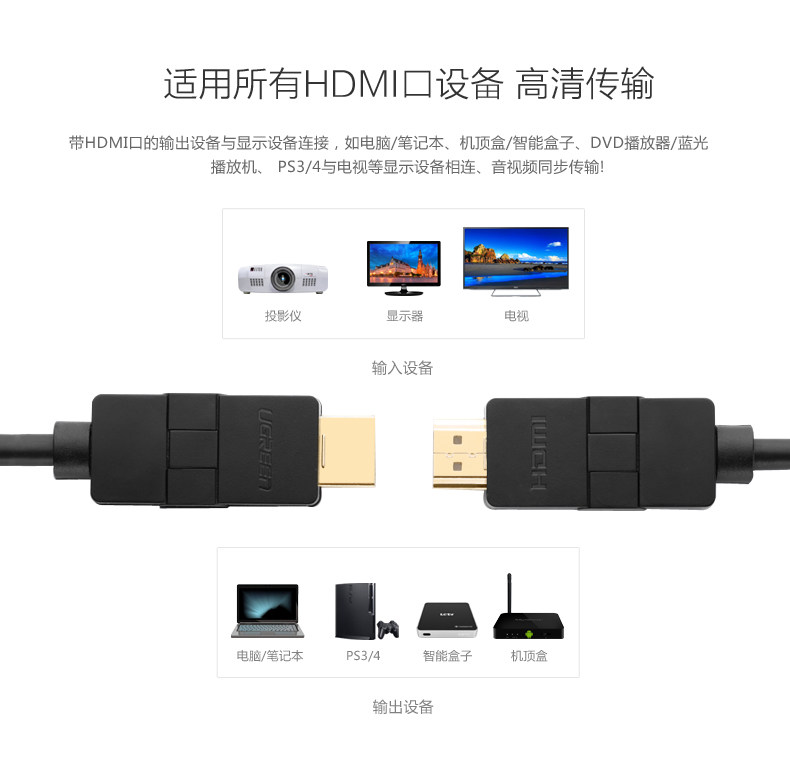 绿联 HDMI高清线1.4版可旋转90°180度直角 连接电视3D弯头hdmi线