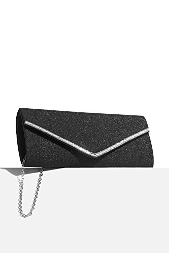 -. Feature : Sparkling envelope flap clutch with a magnetic clasp and a removable chain strap. Fully lined satin interior has a pocket for ID and credit cards. Perfect addition to your evening, formal, prom or cocktail outfit. / Strong and reliable magnetic clasp closure keeps your belongings safe. All metal parts are resistant to rusting, corrosion, oxidation and tarnishing. The colors stay strong, do not fade with time and will not leave marks on you clothing. / Keep your hands free! The length of the drop-in chain strap (47") allows you to wear the clutch purse as a crossbody or shoulder bag that hits at the hip. / The evening handbag fits most cell phones including iPhone 7 Plus / Samsung S7 Edge. Approximate measurements of the clutch: 10.2" (L) x 4.7" (H) x 1.4" (W). / Buy with confidence! All our handbags have 100% 30 days money back guarantee. Top quality backed with exclusive lifetime warranty!