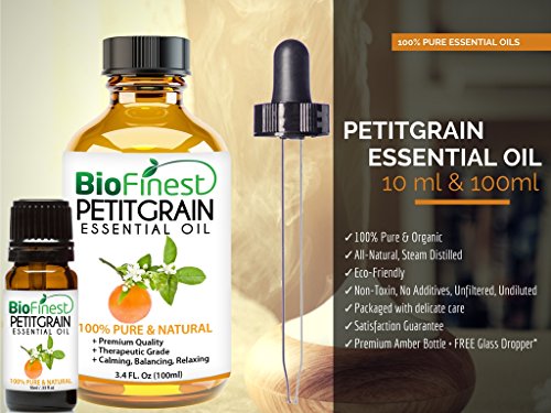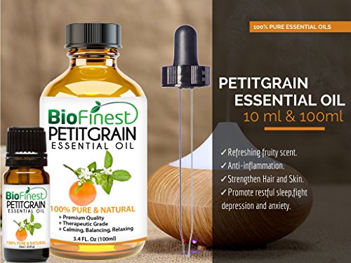 -. Feature : PREMIUM QUALITY PETITGRAIN OIL: 100% Pure - Non-Toxic - No Additives - Unfiltered and Undiluted with No Fillers. Vegan certified, paraben free and cruelty free. / FREE E-BOOK GUIDE (worth $37): Exclusive access to Biofinest comprehensive essential oil guide "100 Ways To Use Essential Oil". Printable and beginner friendly! / PACKAGED IN USA, ELEGANT AMBER BOTTLE: Comes with premium euro dropper cap for easy dispensing. No Leakage or Dripping. Best value for your money! / 100% SATISFIED OF MONEY BACK: We are eco-friendly USA company who stand behind our brand. Try our products risk-free with 100% money back guarantee. / 50+ BESTSELLERS: Basil, Bergamot, Cinnamon, Citronella, Clary Sage, Clove Leaf, Coriander, Cypress, Eucalyptus, Frankincense, Geranium, Ginger, Green Tea, Jasmine, Juniper Berry, Lavender, Lemon, Lemongrass, Lily Flower, Mandarin, Marjoram, Myrrh, Neroli, Orange, Oregano, Patchouli, Peppermint, Pine, Roman Chamomile, Rosemary, Sandalwood, Spearmint, Tea Tree, Thyme, Vetiver, Wintergreen, Ylang Ylang, Aloe Vera, Argan, Coconut, Evening Primrose, Flaxseed, Grapeseed, Jojoba, Pomegranate seed.
