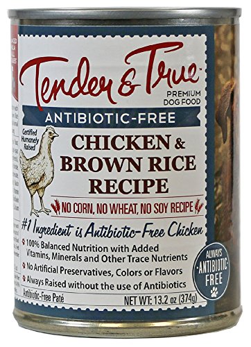 Contains (1) case of 12 antibiotic free chicken and brown rice dog food 13.2 oz cans