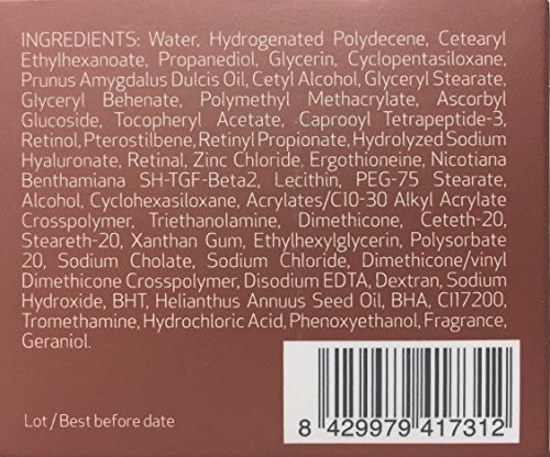 -. Feature : BENEFITS: Strenghtens fragile skin texture, softens facial contours, helps to minimize the appearance of fine lines and deep wrinkles, and unveils skin's youthful radiance. Provides anti-aging, soothing and anti-inflammatory properties. Makes that the active substances enclosed in nanosomes, reach even the deepest layers of the skin. / 3-RETINOL SYSTEM: Three forms of retinol - retinol, retinyl, retinaldehyde - contained in a single product, allow to achieve more spectacular results in removing wrinkles and the most importantly, don't cause redness and irritationof the skin, even in people who previously did not use products with retinol. / INDICATION: High tolerance moisturizing cream. Reduces wrinkles and increases skin firmness. / COMPOSITION: Vitamins C + E, mimetic peptides, retinol, hydrolyzed hyaluronic acid, retinaldehyde, ergothioneine and TGF-β2 growth factor, pterostilbene, retynil. / HOW TO USE: After cleansing, apply to the entire face, neck, and chest avoiding the eyes. For optimal resuls, use after Reti-age Serum.