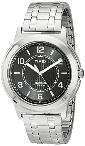 -. Feature : Silver-tone watch featuring easy-to-read dial with Indiglo light / 40 mm brass case with mineral dial window / Quartz movement with analog display / Stainless steel bracelet with expansion-band closure / Water resistant to 50 m (165 ft)