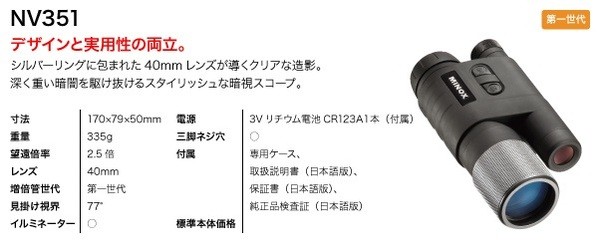【商品名】暗視スコープ/ナイトビジョン 【単眼鏡型】 40mmレンズ ミノックス 【日本正規品】 NV351