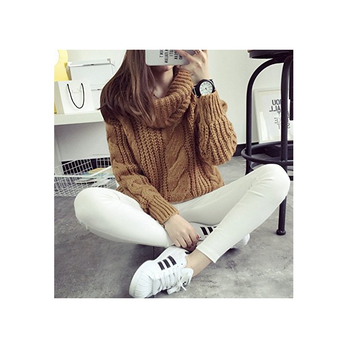 스웨터 레이디스 터틀넥 케이블 뜨기
