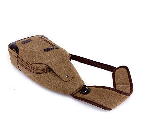 1:IDEAL APPLICATIONS:Brown canvas material with two ways leather zipper pullers, hardware D word buckle rivet and leather button decoration, retro and fashion.