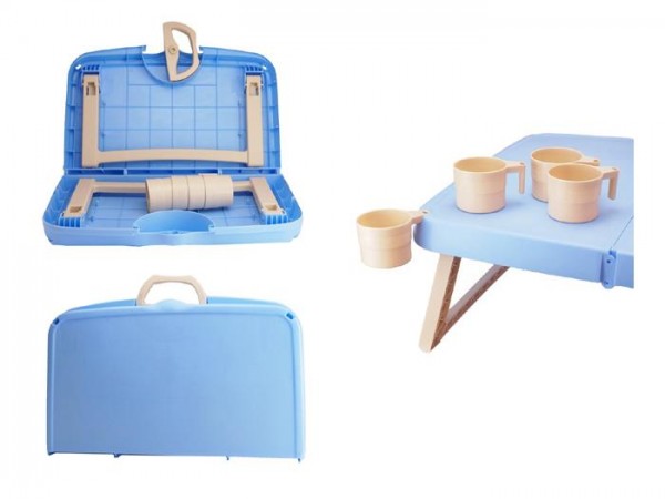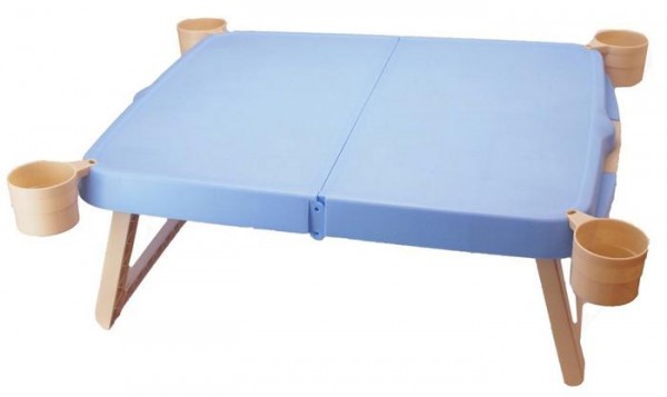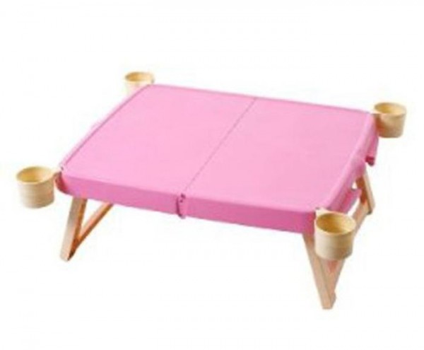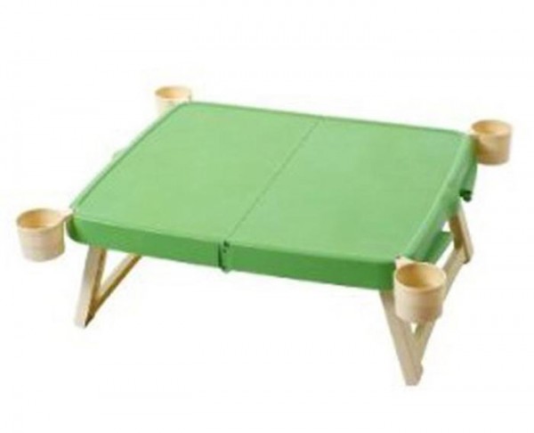 | 飲み物も入れておけるカップが付いたハンディテーブル。 |