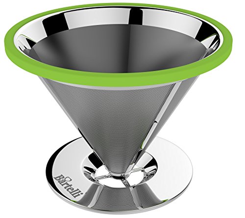 -. Brand : Bartelli -. Color : Green -. EAN : 0602401733992 -. Feature : The perfect alternative to disposable paper filters, which rob your coffee of essential oils and nutrients. / Designed to fit on most cups, mugs, thermoses, small pots, and even carafes. / Laser cut 18/10 stainless steel double filter ensures that no grounds end up in your cup / Our pour over coffee filter does not absorb essentials oils from coffee beans, allowing you to make a perfectly clear and flavorful coffee every single time. / Reusable and easy to clean - simply rinse well with warm water or throw it into the dishwasher. -. Label : Bartelli -. Manufacturer : Bartelli -. Model : BCD-102G -. MPN : BCD-102G -. PartNumber : BCD-102G -. ProductGroup : Kitchen -. ProductTypeName : KITCHEN -. Publisher : Bartelli -. Studio : Bartelli -. Title : Bartelli Paperless Pour Over Coffee Dripper and Brewer - Permanent Reusable Stainless Steel Filter - Single Serve Cup or Small Pot -. UPC : 602401733992