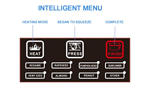 -. Feature : Health Regimen Oil Press for 18 Kinds of Oil Plants,such as Castor,Canola,Flax seed,Soybean,Peanut,Pumpkin Seed,Walnut Kernel,Rapeseed,Sunflower,Soybean,Almond,Nut,Pine Nut,Peanut etc / Food grade Stainless Steel and Food Grade PC Oil Cup,Safety and Cleaned / Intelligent Menu and Intelligent Constant Temperature Control,Simple and Easy to Operate / Opened the New Template of Motor for Continuous Pressing and Press Soybean / No Noisy and No Shaking to Make Fresh Oil