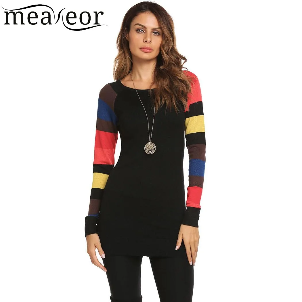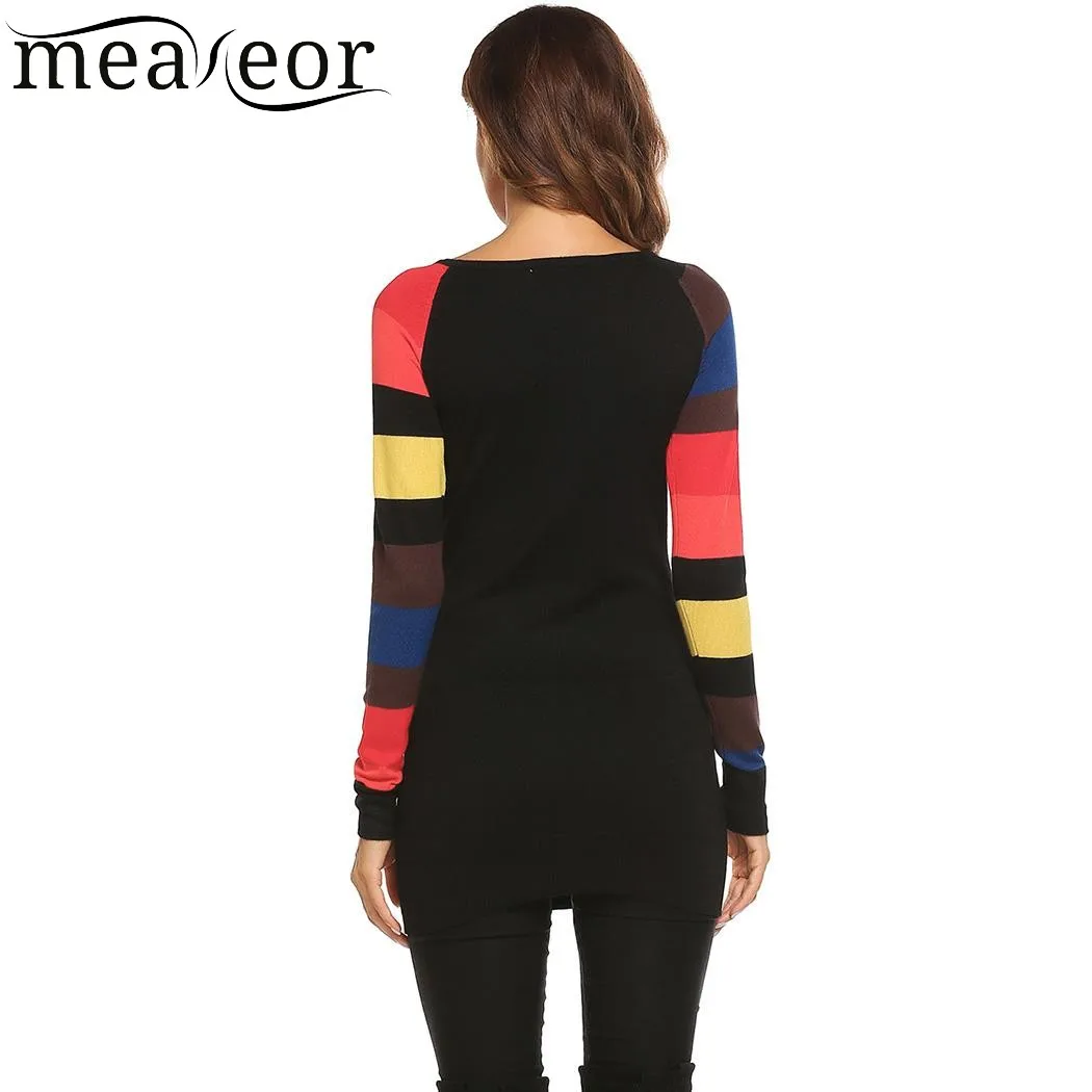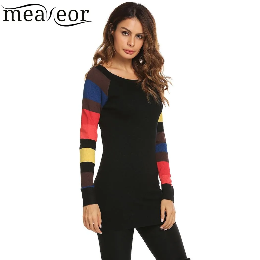 Item Style : Meaneor Contrast Color Patchwork Pullover Thin Knitted Sweater