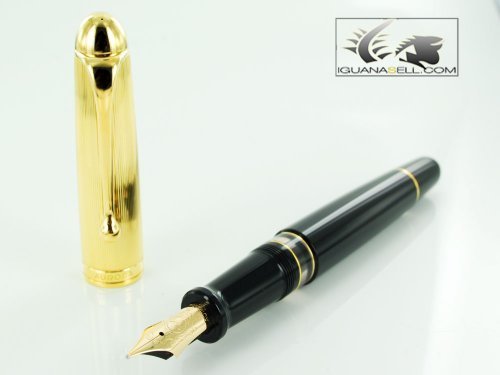 -. Title : Aurora 88 Large Fountain Pen Gold Plate And Black Medium by AURORA PENS