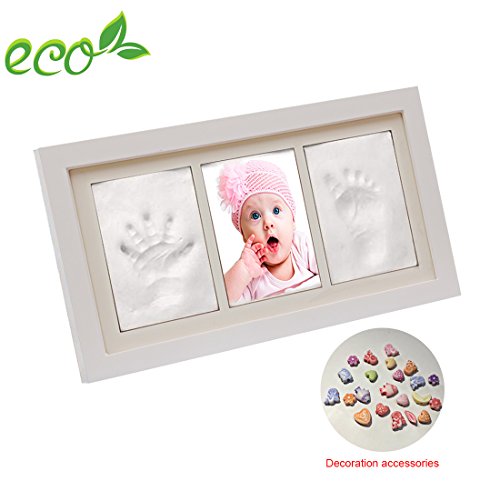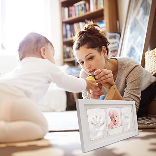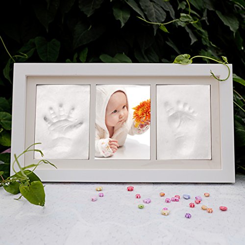 Baby Handprint and Footprint Photo Frame kit ,Sweetaus Baby shower Keepsake,Perfect Baby Shower Gift (3 Section)
