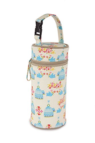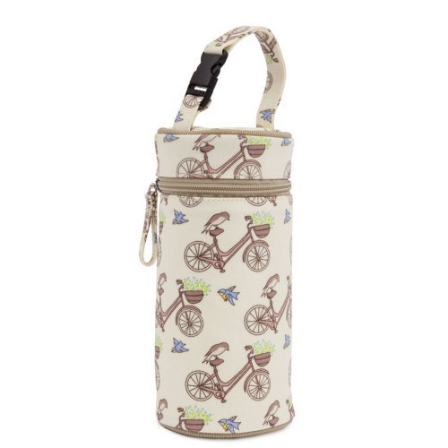 Thermo-insulated bottle holder with canvas detachable handle Zip Top Closure & Handy snap clip to easily attach to other bags or a stroller Keeps bottles / food warm for up to 4 hours Item model num : BOTTLE HOLDER IN THE MEWS PINK BIKES