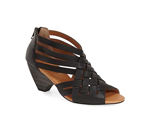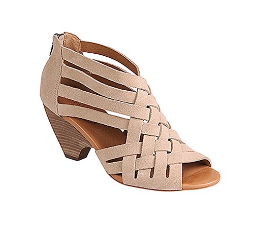Product DescriptionCrisscrossed leather strap sandal with stacked 2 3/4 inch0