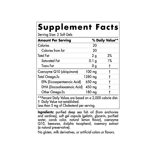 Same formula as our #1-selling omega-3 supplement with added coenzyme benefits. Ultimate Omega +CoQ10 provides high- intensity support for both body and mind. Without solicitation, doctors and researchers worldwide consistently choose and recommend this powerful formula. Concentrated Ultimate Omega includes more omega-3s per serving than most other omega-3 products. This means you get more health benefits in a smaller serving. Ultimate Omega +CoQ10 also provides 100 mg of coenzyme Q10 (CoQ10) ubiquinol to support cellular energy production and cardiovascular health. Ubiquinol is the active antioxidant form of CoQ10, a fat-soluble molecule found in nearly every cell, tissue, and organ in the body, that helps transform food into energy. It is ideal for people who may be deficient in this important nutrient. This product does not contain fish oil.