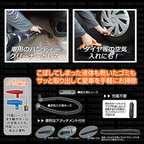 ●1つの本体で2通りの使い方 車用のハンディークリーナーとして!専用のホースで空気入れにも!