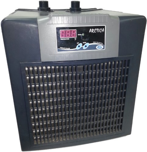 Aquarium arctica titanium chiller; smart memory chip restores to last set temperature after power failure; auto IC temperature control system; digital LED temperature controller can easily be read day or night; inline series; no hard plumbing necessary; quick installation offered with 3 different size hose connections.Feature