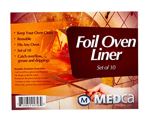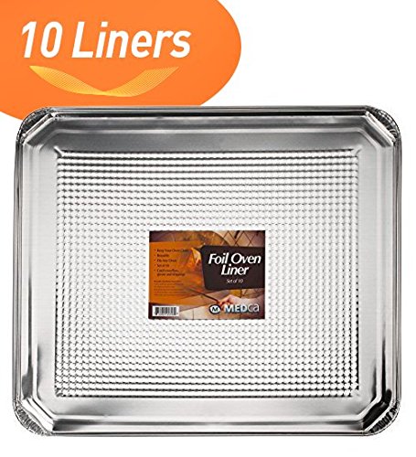 UNIVERSAL FOIL OVEN LINER: An ultimate pack of 10 foil oven liners designed so you can keep your oven clean. You can use it to roast, bake, reheat, and serve.