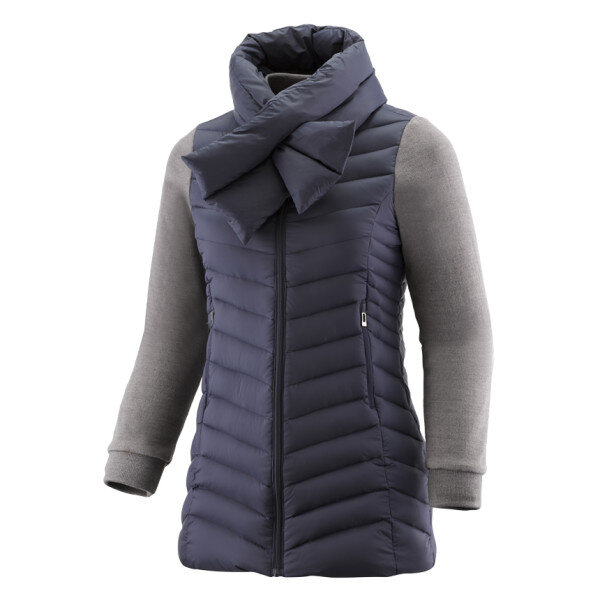 여성 다운 입니다 블루종 디테일과 니트소재를 혼용한 가벼운 소재의 중경량 다운자켓입니다 다양한 스타일에 활용할 수 있는 다운 머플러가 추가로 제공 됩니다