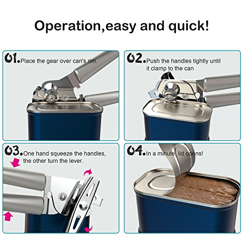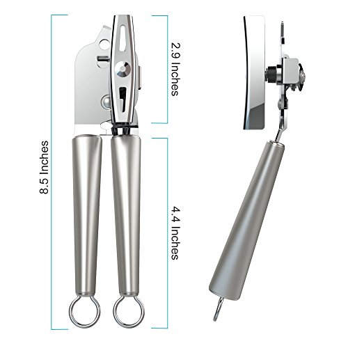 Perfect and uniquely crafted manual can opener, premium quality stainless steel cutter blade, ultra sharp blade is durable and won't rust for long-lifetime use, safely and easily open larger, sturdier cans with a smooth movement.