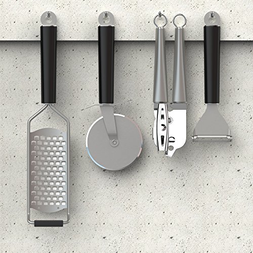 Design base on ergonomic handles fit, made from super stainless steel and comfortable to grip. Non-slip rubberized handles, hanging hooks for convenient storage; you can hang it anywhere you want, stylish design to complement kitchen deco.