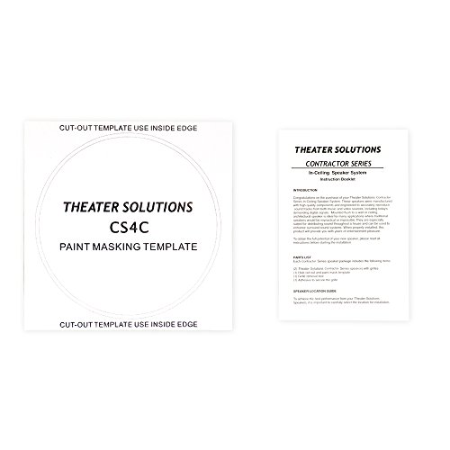 Theater Solutions CS4C in ceiling speakers, recommended power is 10-150 watts per speaker, efficiency is 89dB, frequency response is 70Hz-20 kHz, 8ohm, 2-way design and functionality