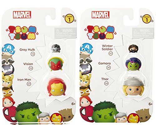 -. Feature : Disney tsum tsum marvel set 2-pack 6 figures. / Wave 1 marvel 3-pack stackable figures. / 3 pack series 1 figures - iron man 127 /vision 132 /hulk (grey) 119. / 3 pack series 1 figures - thor 124 /gamora 141 /winter soldier 107. / Marvel collection stackable mini figures "collect 'em! Stack 'em! " collectors.