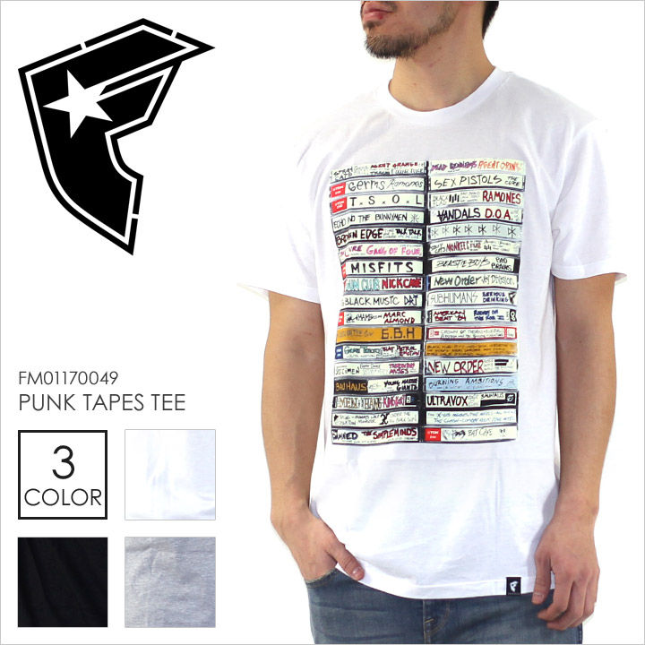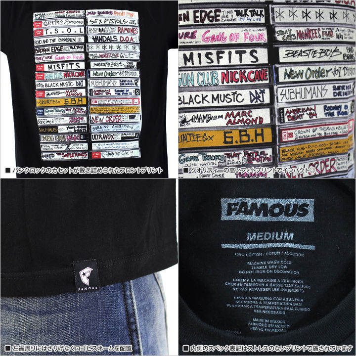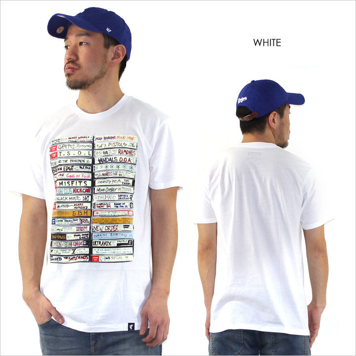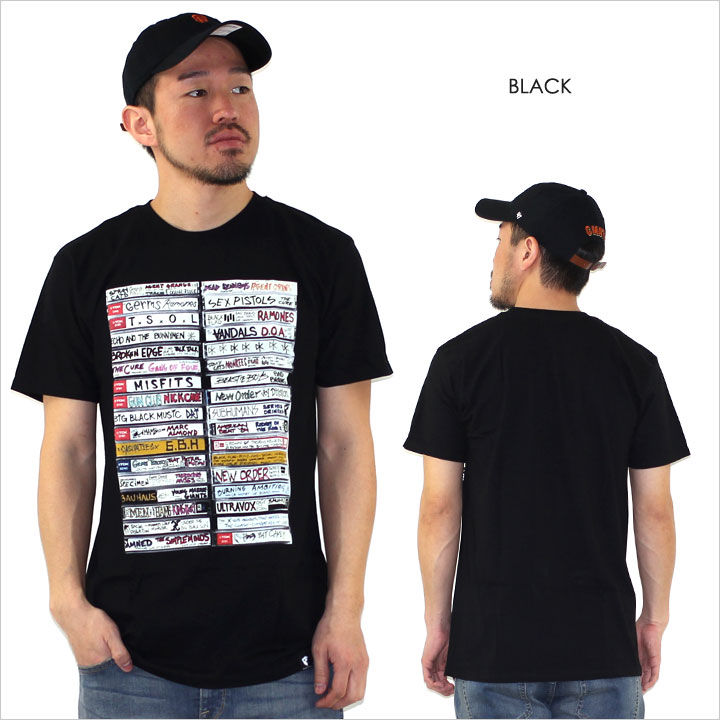 分かる人には分かるクラシックなカセットテープを敷き詰めたフロントプリントが好印象のTシャツ。