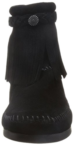 -. Feature : Moccasin-inspired boot with fringed shaft featuring concho studs and braided trim at collar / Foam insole / Visible zipper entry at back